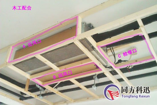 出風口:若使用ABS風口在測量風口時要留有一定的熱脹冷縮空間。另各位顧客注意,出風口一定不能裝在燈帶附近(理由:如果出風口前有燈帶,會造成空調(diào)在制熱時遮擋出風,而熱空氣是往上的,使得熱空氣滯留房間的上部,從而整個活動空間感覺熱量不足,需很長時間才能有熱感覺。)