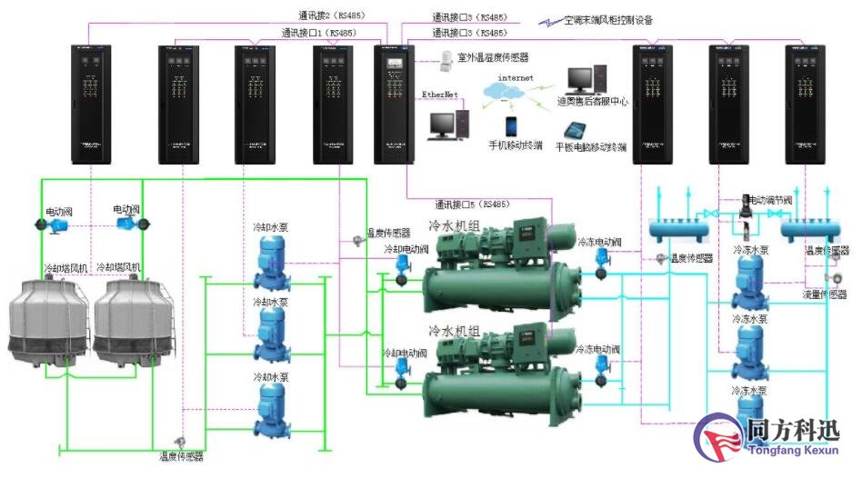 一次水泵為定頻,末端的二次水泵中進行單獨變頻調(diào)節(jié)。