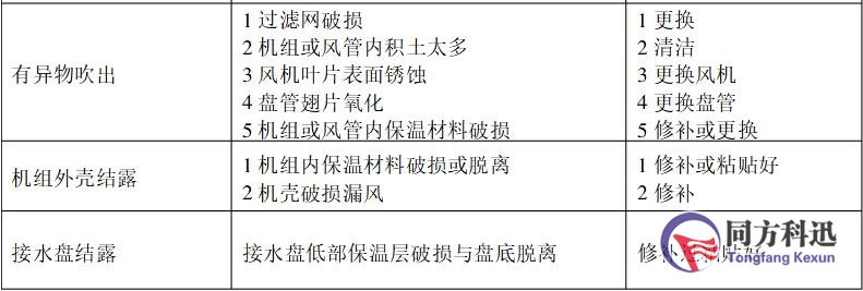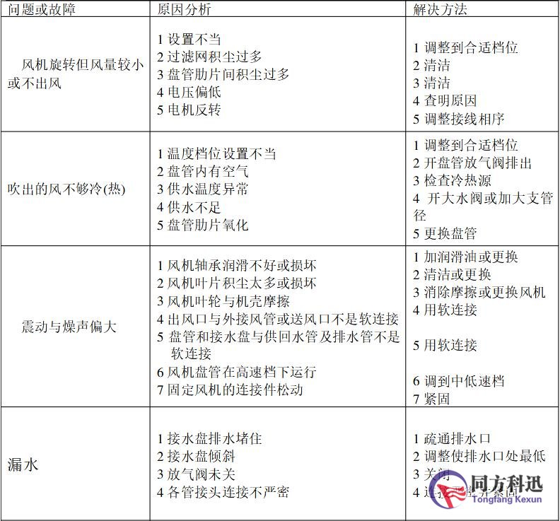 圖表1:風(fēng)機(jī)盤管常見問題和故障的分析與解決方法:
