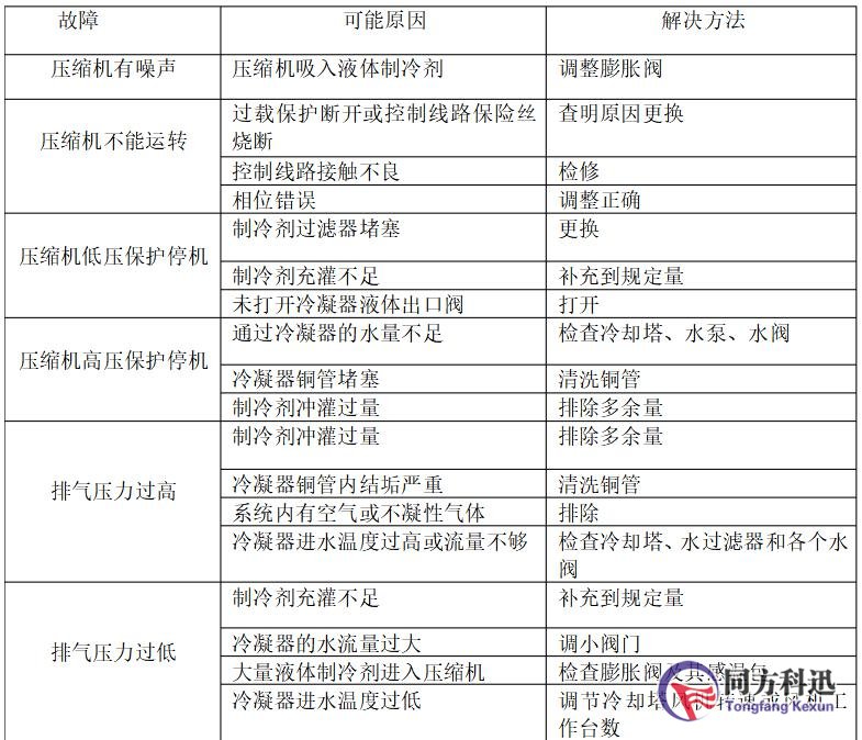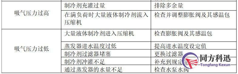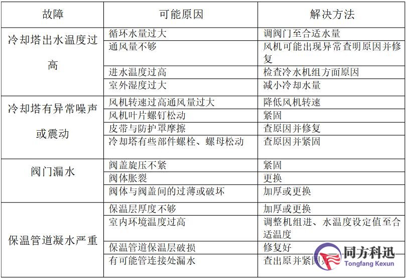 表三.冷水系統(tǒng)常出現(xiàn)的問題