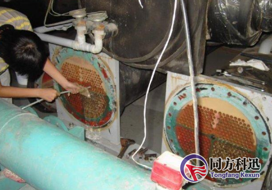 中央空調(diào)長(zhǎng)期使用后,內(nèi)部環(huán)境受灰塵,病毒,及潮濕的影響。對(duì)空調(diào)設(shè)備的正常工作影響越來越嚴(yán)重。隨著空調(diào)的運(yùn)行,循環(huán)水的濃縮和溫度變化,水中各種離子濃度積超過其本身的濃度積時(shí),就會(huì)生成沉淀,形成水垢,而水中溶解氧的存在和其它因素的聯(lián)合作用又易引起設(shè)備的腐蝕。循環(huán)水中營(yíng)養(yǎng)物的不斷富集,又為藻類和細(xì)菌的滋生提供了充足的養(yǎng)分,形成生物粘泥。這些水垢、粘泥及腐蝕物會(huì)導(dǎo)致?lián)Q熱器熱交換效率降低、制冷量下降;使循環(huán)水量減少、管道堵塞,冷量輸送不暢,給中央空調(diào)的安全運(yùn)行帶來嚴(yán)重的危害。因此,有必要對(duì)中央空調(diào)的水系統(tǒng)進(jìn)行清洗。