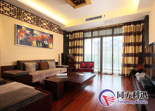 中央空調(diào)的安裝位置當(dāng)然要根據(jù)吊頂?shù)姆绞絹?lái)決定,客餐廳之間無(wú)疑是一個(gè)最佳的安裝位置。它只需要在客餐廳的過(guò)道區(qū)域進(jìn)行吊頂,減少了吊頂空間的同時(shí),也讓客餐廳之間有了明顯的層次感。一般采用側(cè)出風(fēng)、下回風(fēng)的氣流方式,空調(diào)室內(nèi)機(jī)有效的影響到客廳整個(gè)房間,出風(fēng)口用雙層百葉,用來(lái)調(diào)節(jié)空調(diào)的送風(fēng)方向,中央空調(diào)室內(nèi)機(jī)在送風(fēng)方向上重點(diǎn)考慮常用的沙發(fā)區(qū)域。